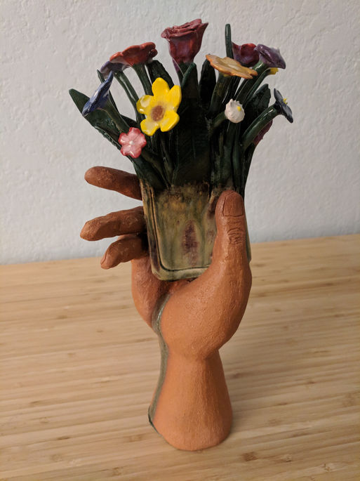 Hand Holding Cellphone Turning Into Flowers